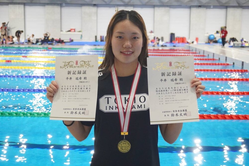 競泳 平井瑞希選手「第67回 日本選手権大会 水泳競技大会」50m背泳ぎ優勝(日本新記録 世界Jr.新記録) 100バタフライ優勝(大会新記録)