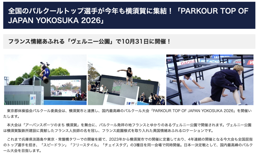 「PARKOUR TOP OF JAPAN YOKOSUKA 2026」開催決定!