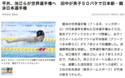 競泳 平井瑞希選手「日刊スポーツ」掲載