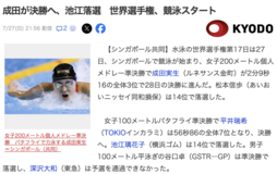 競泳 平井瑞希選手 「JIJI.COM」掲載